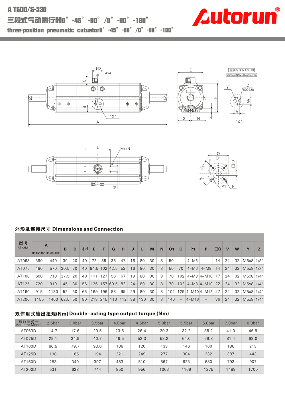 6、采用國Ji規(guī)范尺寸:輸出軸槽、螺孔;頂部安裝孔尺寸符合NAMUR標準;氣源接口尺寸符合NAMUR標準;底部安裝孔尺寸符合ISO5211標準,方便安裝電磁閥限位開關(guān)等附件。